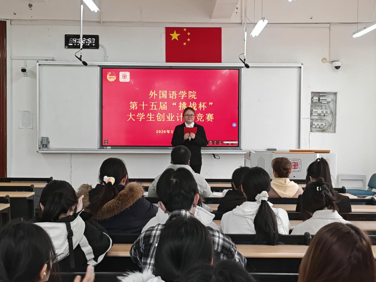 3月3日,外国语学院在W3108教室举办“挑战杯”中国大学生创业计划竞赛院赛,辅导员皮卫阳、李利老师参加活动。