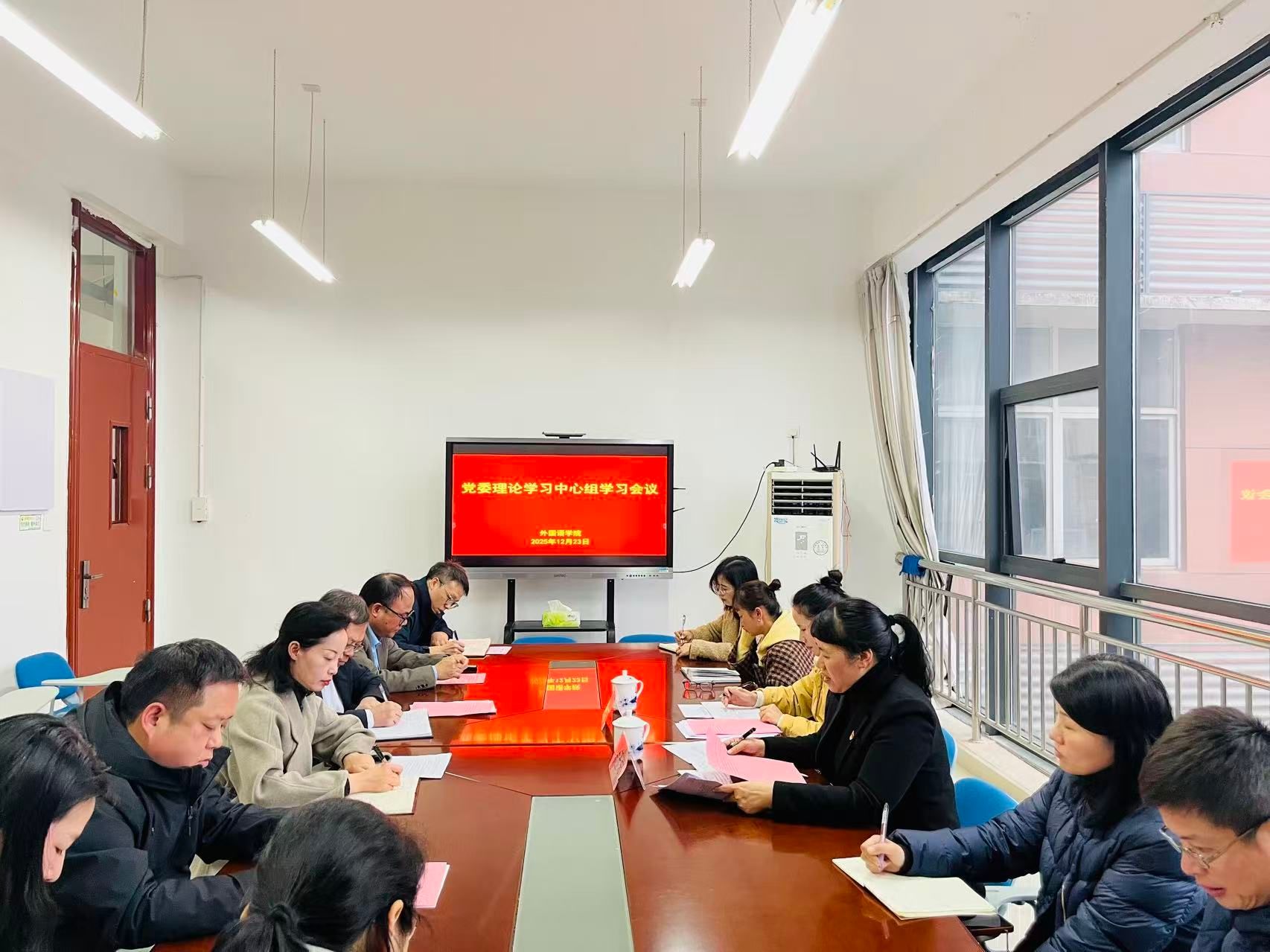 12月23日下午,校党委委员、宣传部长余玉荣参加外国语学院党委理论学习中心组学习会。外国语学院党委书记金春主持,学院党政班子成员、各党支部书记、各科室负责人参加。