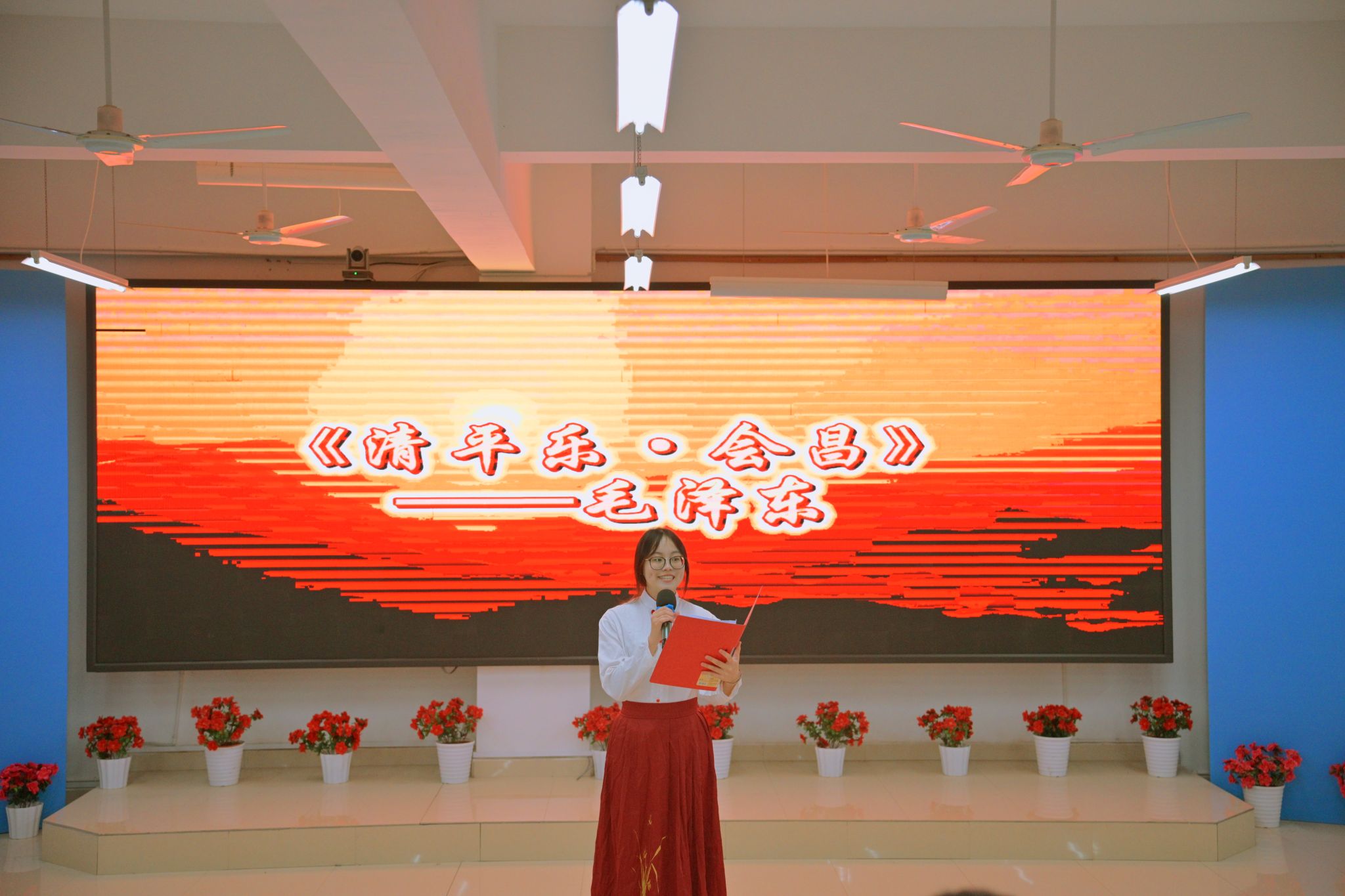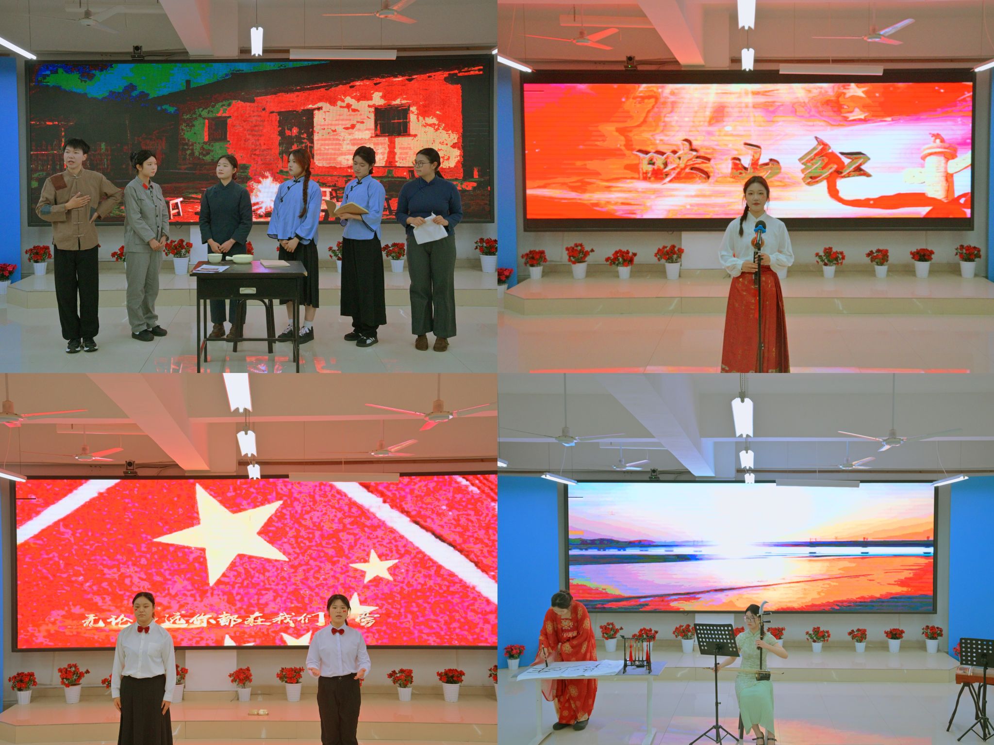 朗诵会还融入了多种艺术形式。话剧《井冈山上红米香,星火燎原鱼水情》、葫芦丝演奏《映山红》生动再现了军民一心、艰苦奋斗的动人场景;舞蹈《美丽中国》、快板《八一新声·快板赞中国》、器乐合奏《我和我的祖国》以及歌曲《领航》,以不同艺术元素礼赞新中国,讴歌新时代,抒发了师生真挚爱国情怀。现场还设置了毛泽东诗词竞答环节,观众热情互动,气氛热烈。