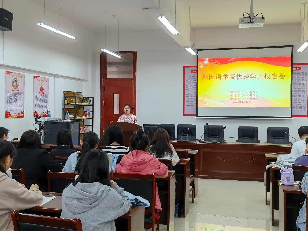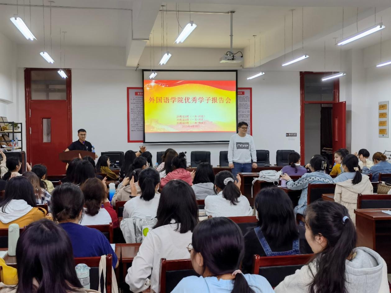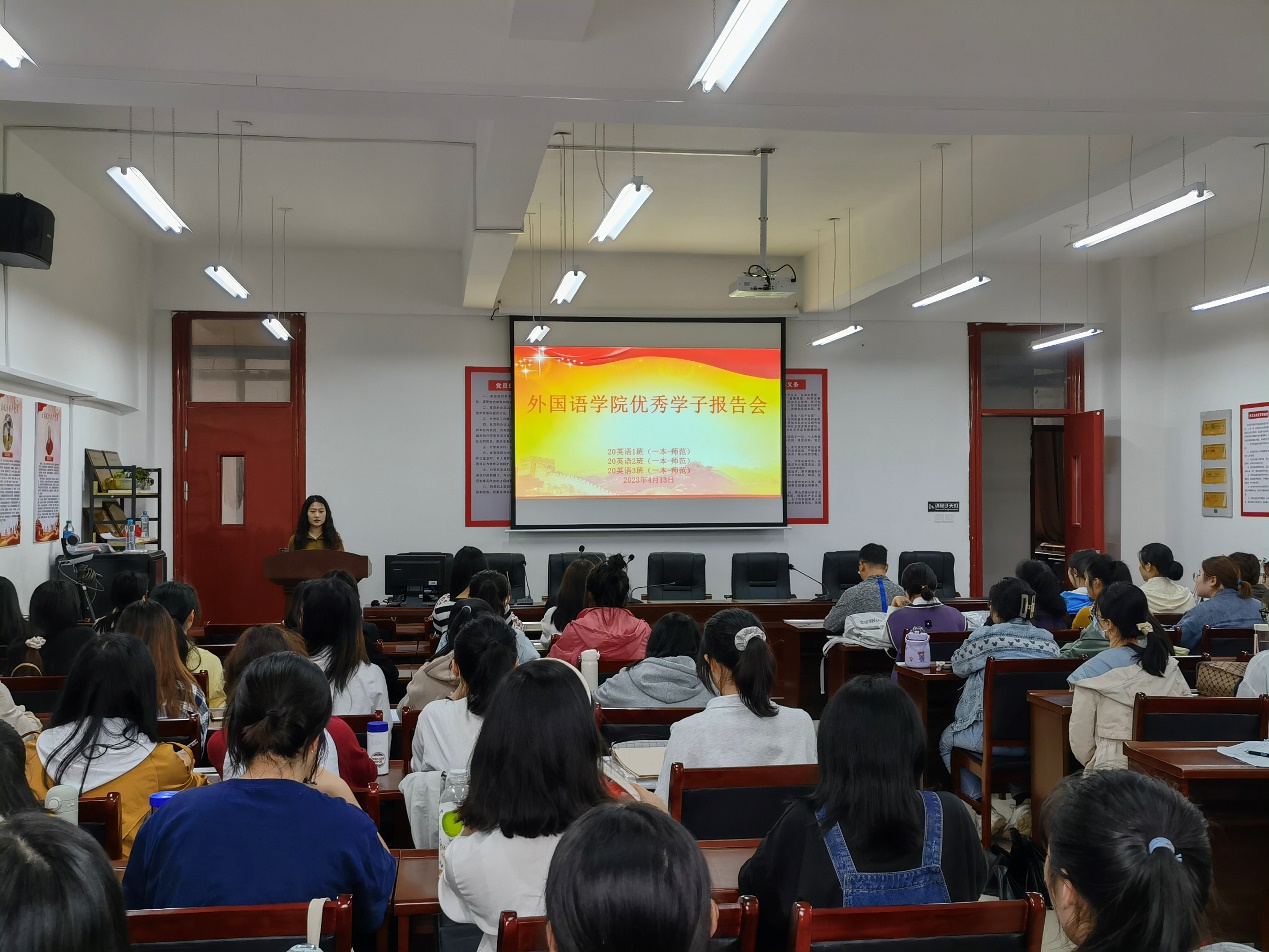 为鼓励先进典型,树立青春榜样,进一步发挥优秀学子的带头引领作用,助力我院学生在求知路上不断进取、开阔视野,外国语学院于4月13日下午在W3303举办优秀学子报告会。本次报告会邀请18级英语师范2班李梦晴、18级法语1班黄业飞、19级英语师范1班任浩楠做报告,院团委书记阙伟康主持会议,20级英语(一本-师范)1、2、3班全体同学参加。