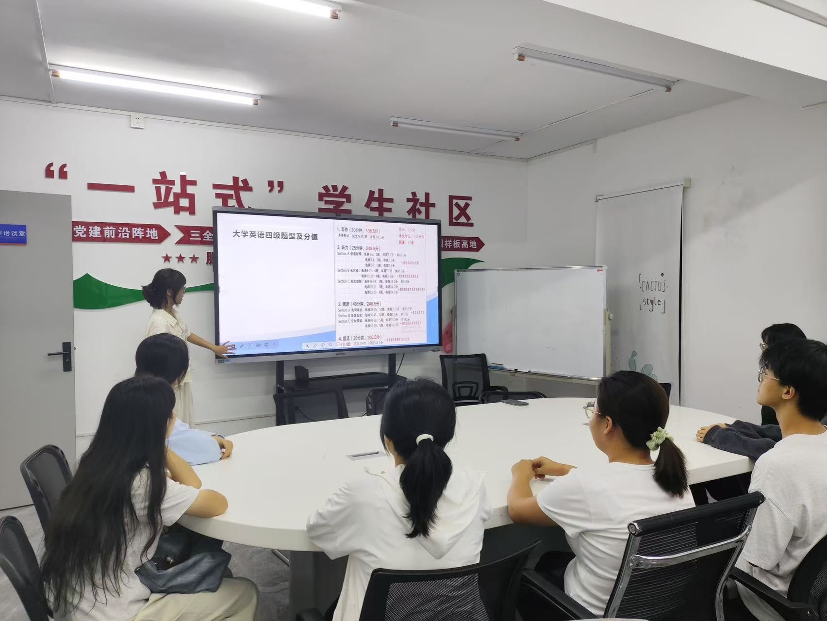 学生党员们聚焦英语四级考试开展专项辅导。裘媛萌聚焦写作,通过讲解文章、拆解要领帮助同学快速理解文章结构,明晰答题逻辑;胡耀匀针对阅读板块,分析题型分值和答题实用技巧,有效强化阅读能力;黄小丽以电影台词为例解析翻译题,使知识生动易懂,并结合真题实战提升学习效果;叶秀丽系统传授听力方法,帮助同学由“被动听到”到“主动听懂”,分享个性化备考资源。活动精准对接学生需求,显著提升了同学们的备考成效,充分发挥了学生党员的先锋模范作用。