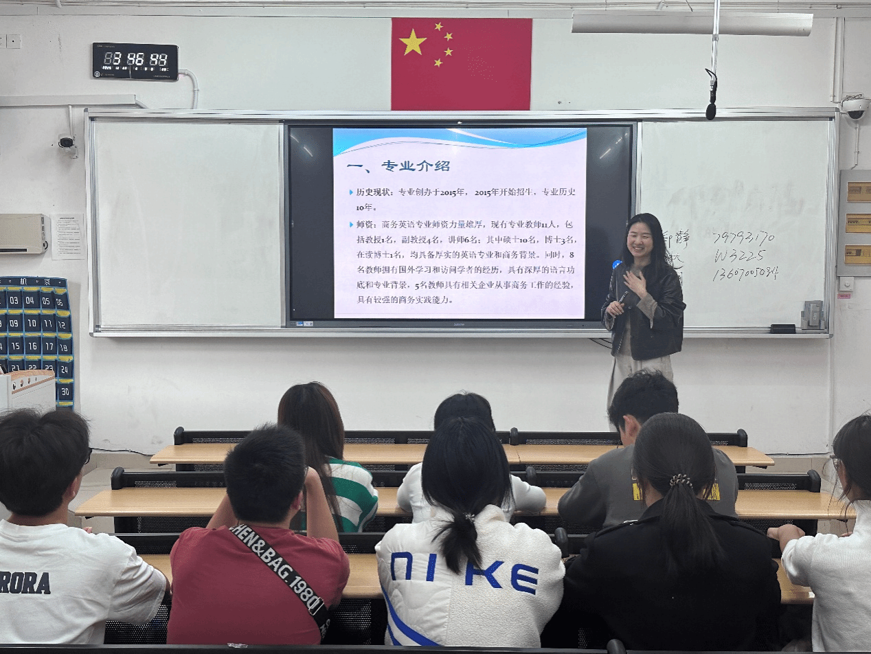 胡红霞围绕英语(师范)专业的专业概况、培养目标、课程设置、毕业要求、发展前景及学业规划等核心方面系统介绍专业情况。她结合行业政策趋势,从技能训练、教师职业素养养成等维度,要求学生将专业学科能力与师范教育技能融会贯通,并针对英语学习方法、教师编制考试及教育类考研政策与趋势展开解读,为学生明确教师职业发展方向与学业规划路径。