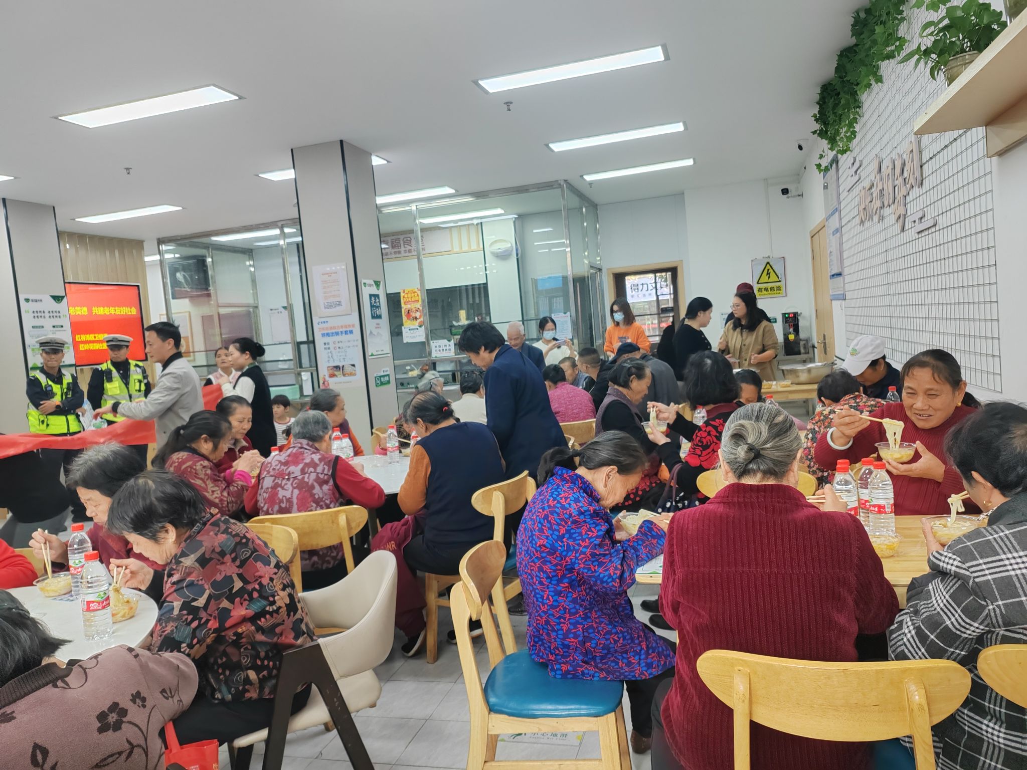 “秋季运动会”结束后,社区与外国语学院联合开展“幸福食堂”活动,为老人们准备了长寿面和节日蛋糕。志愿者们与老人们共品美食、互动交流。志愿者们向在场老人们送上真挚的节日祝福,现场祝福声声,温情流动,让老人们在重阳佳节感受到了家人般的温暖。