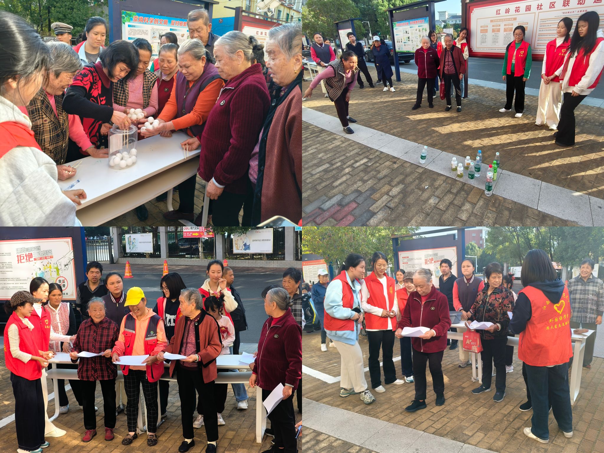 秋高气爽,情暖社区。在社区“秋季运动会”活动中,外国语学院的志愿者们为长者们量身定制了三项趣味运动:纸张运球、筷子夹乒乓球和水瓶保龄球。志愿者们耐心讲解规则、示范动作,悉心搀扶行动不便的老人,确保每位长者都能安全参与活动。现场欢声笑语,老人们表示,在轻松愉快的氛围中既锻炼了身体,又收获了快乐,真真切切地感受到了“老有所乐、老有所健”的关怀与温暖,居民们纷纷为此活动点赞,现场其乐融融。