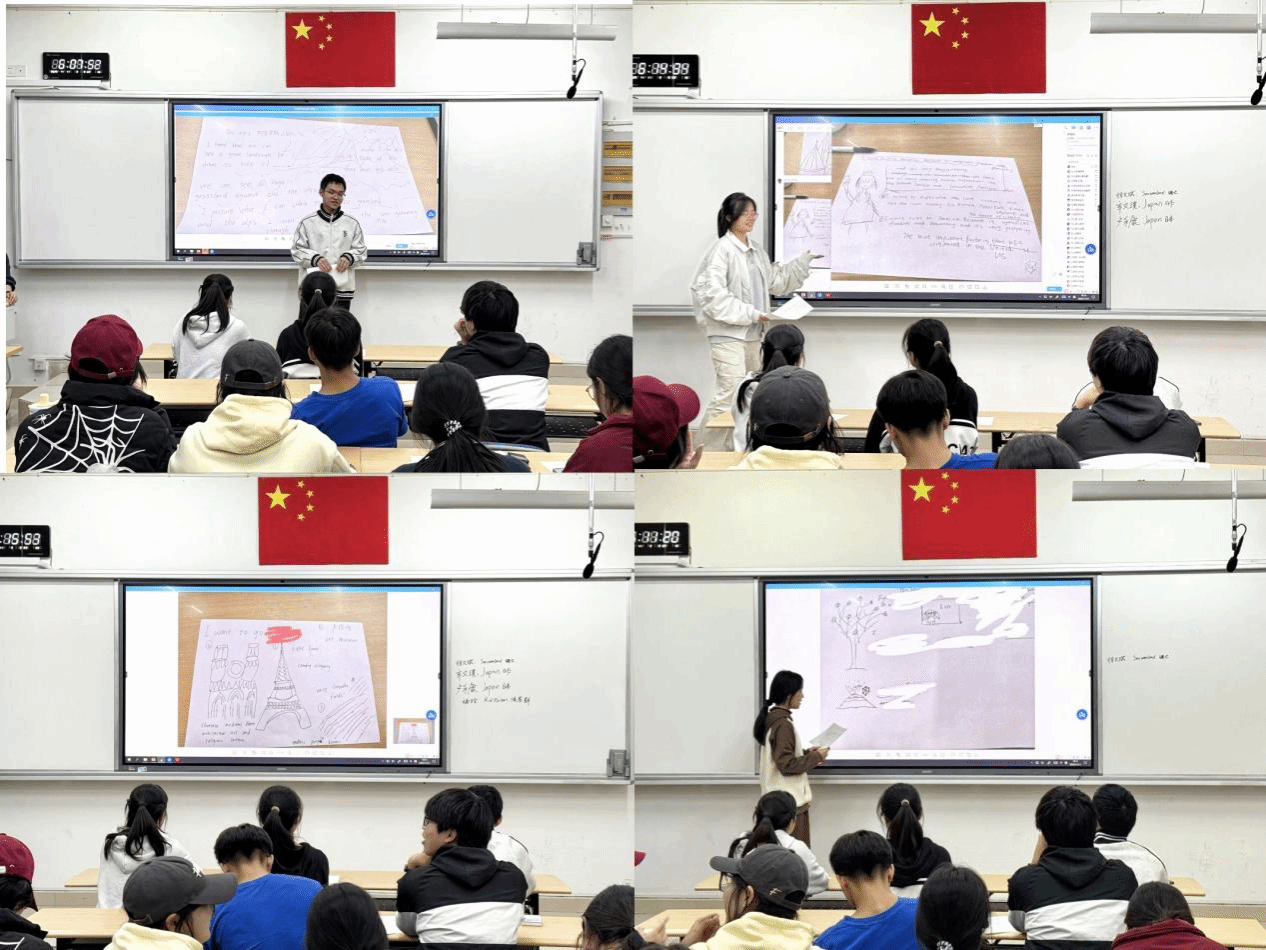 活动创意十足,将艺术创作与口语实践相结合。参与者首先绘制代表不同国家文化的画作,用英文写上旅行理由。随后,通过小组讨论深化对各国文化的理解。最后,各小组代表手持画作上台,用英语进行了生动精彩的分享,现场掌声不断。