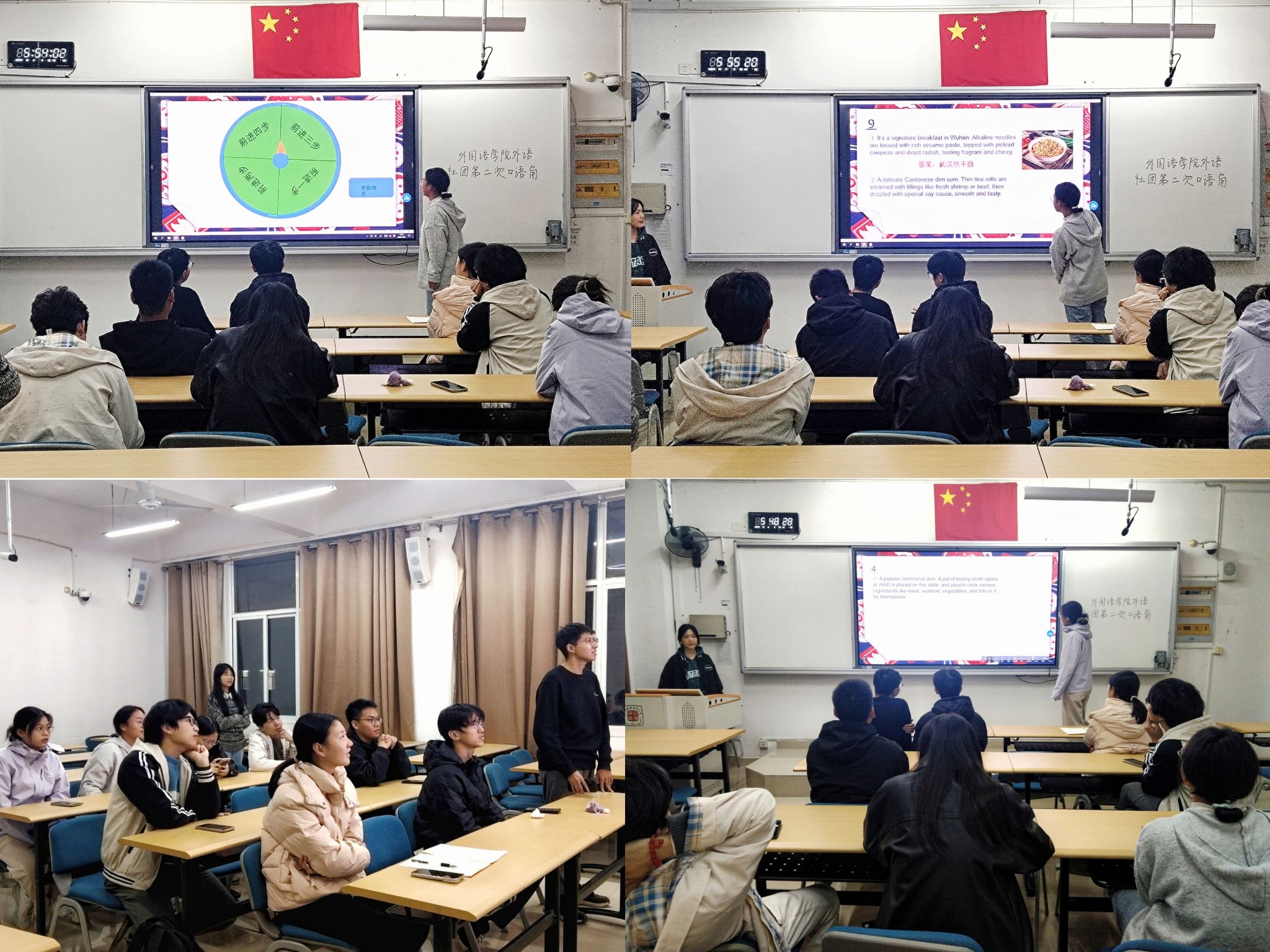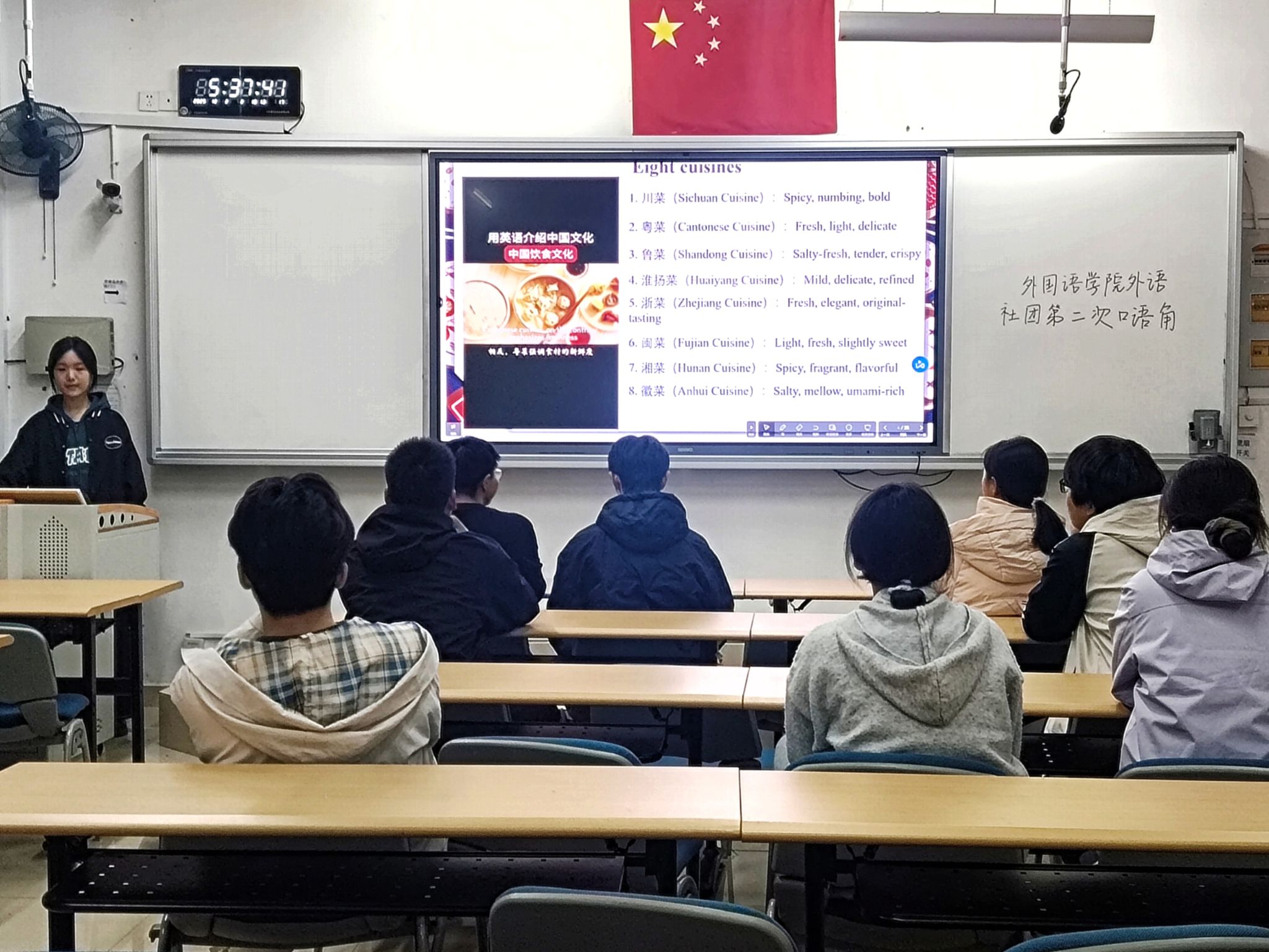 12月2日,外国语学院外语社团在文科楼W3402教室举办以“National Delicacies across China”为主题的英语口语角活动,吸引了不少英语爱好者参与。