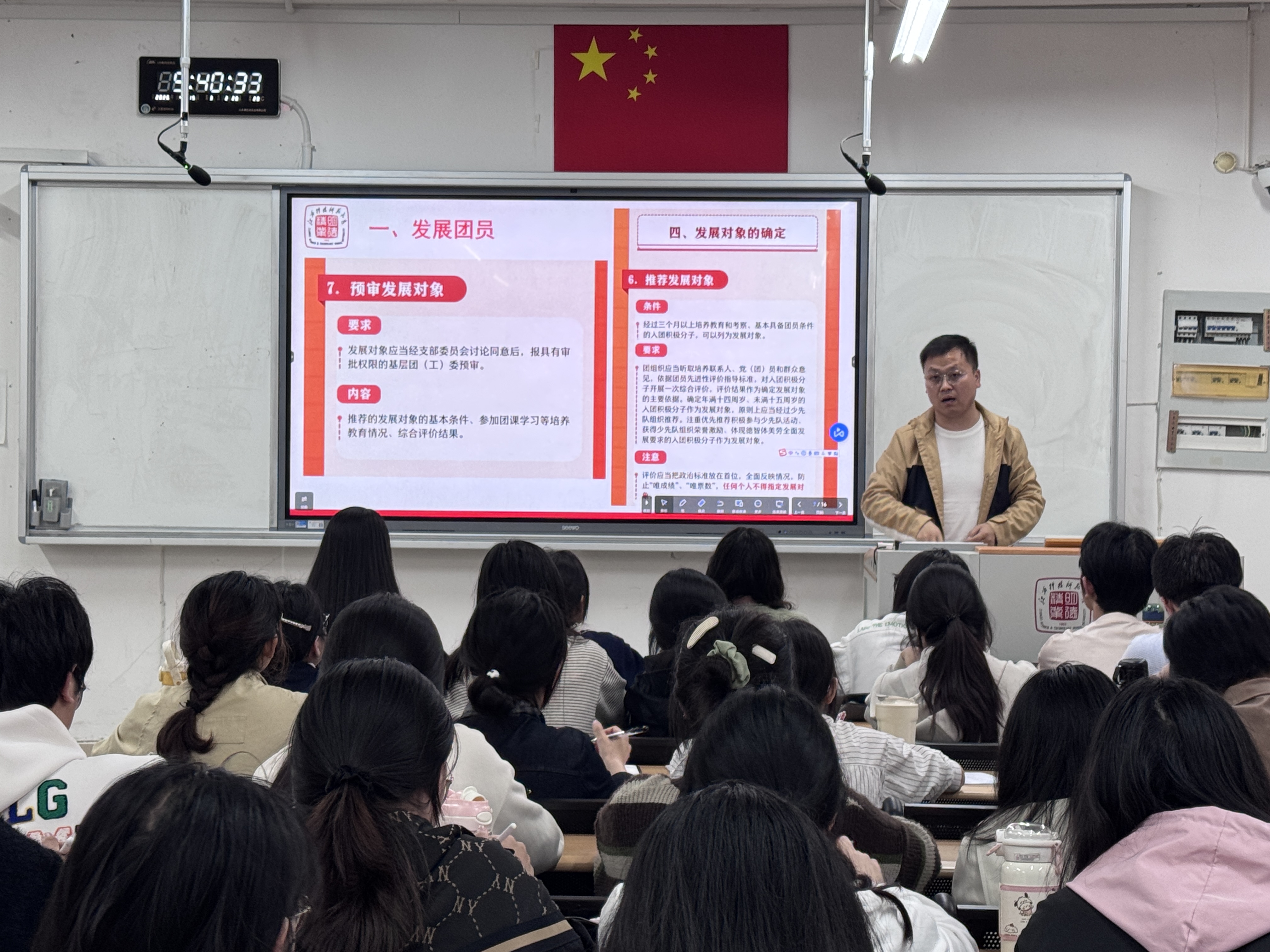 皮卫阳重点解读了发展团员工作程序要求。他依据《中国共产主义青年团发展团员工作细则》,详细讲解了申请入团、入团积极分子的确定、教育培养和考察、发展对象的确定、新团员的接收5个阶段15个步骤程序要求,并规范团员档案归档工作。同时,他要求各团支部和学院团委青年信息中心要严格落实“三会两制一课”制度,精准掌握入团申请人、入团积极分子、团员等基础信息,定期开展档案核查,及时更新维护智慧团建系统,做好学社衔接,严格推优工作程序,常态化开展团务工作培训,促进规范管理。