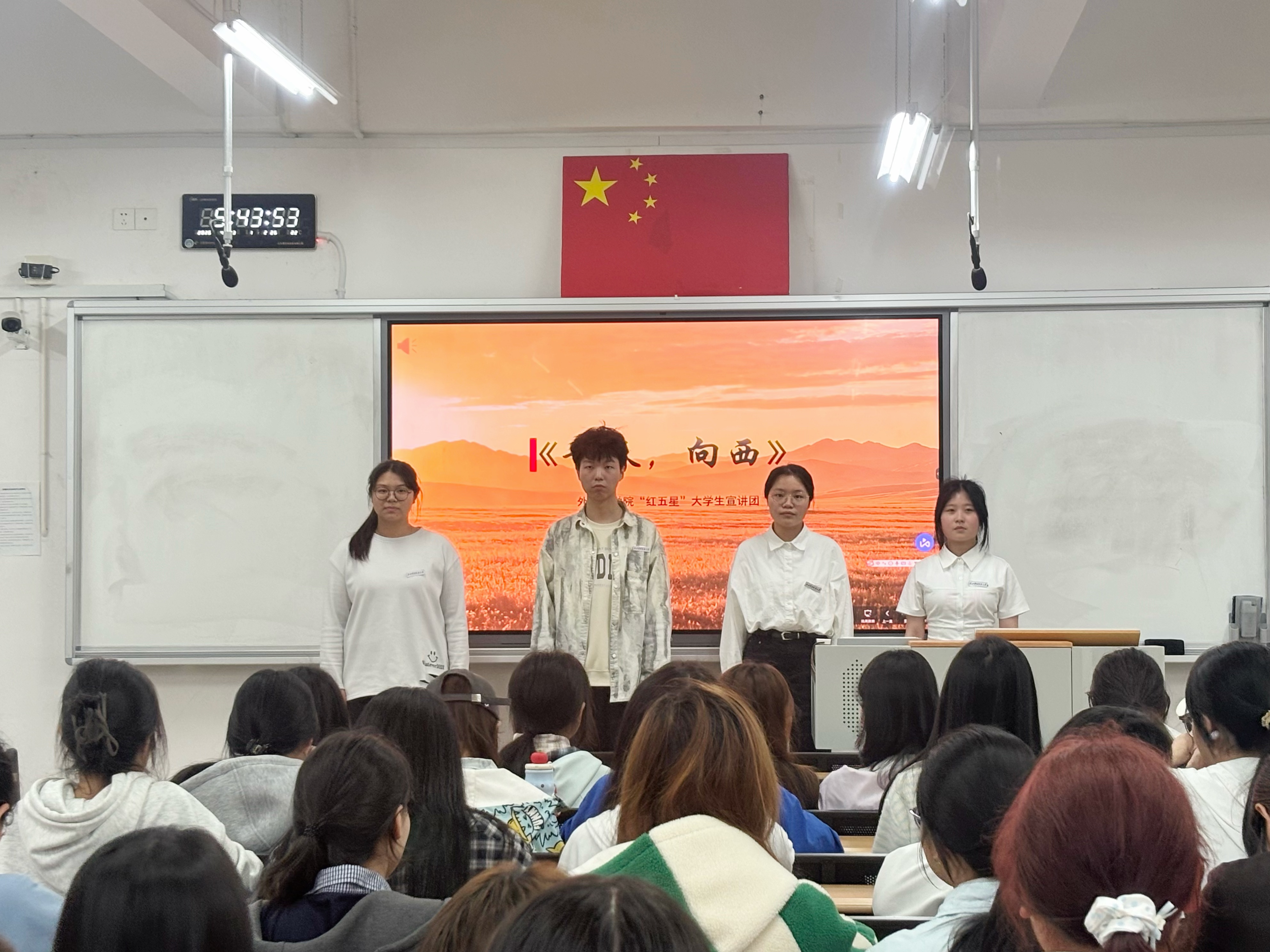 为帮助青年学子了解大学生志愿服务西部计划政策,4月13日,外国语学院“红五星”大学生宣讲团在W3107开展“青春逐梦西部,奉献点亮未来”西部计划主题宣讲活动。