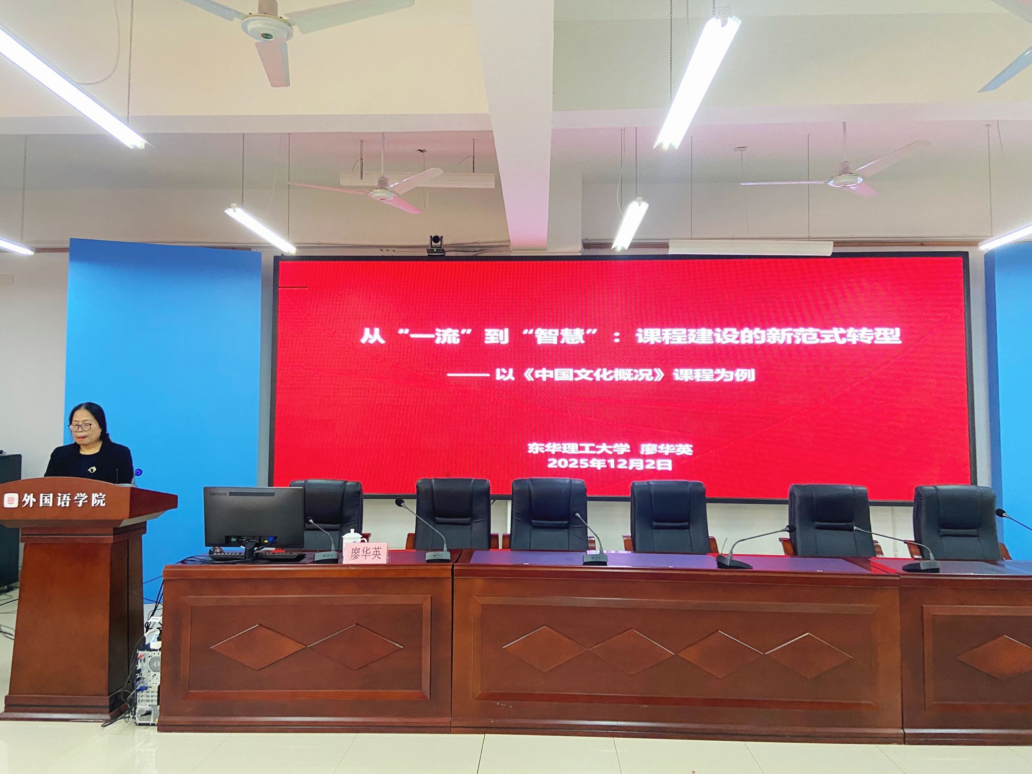 12月2日下午,学院特邀东华理工大学廖华英教授在W3101会议室作题为《从“一流”到“智慧”:课程建设的新范式转型—以《中国文化概况》课程为例》的专题讲座。外国语学院全体教师到场聆听,讲座由院长张文星主持。